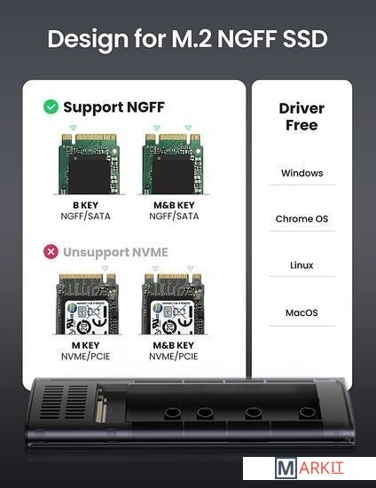 Markit » Боксы для накопителей » Бокс для накопителей M.2 Ugreen CM400 10903