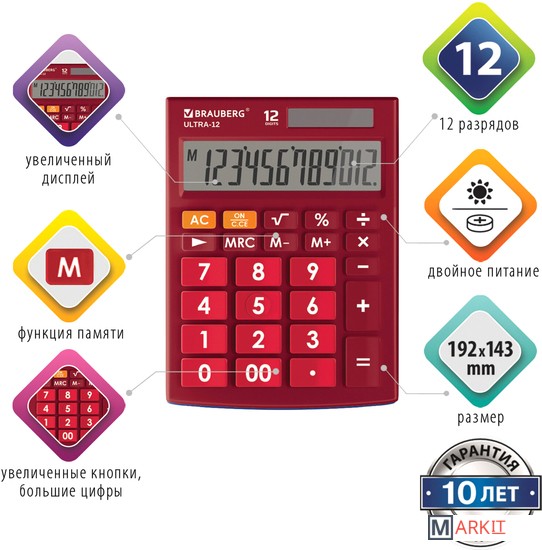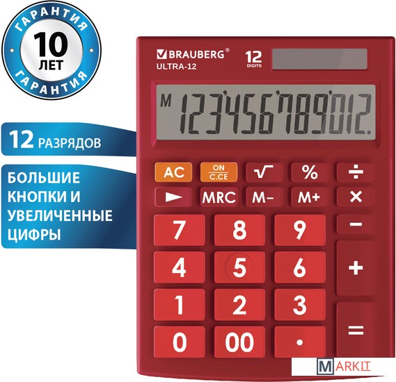 Markit » Калькуляторы » Бухгалтерский калькулятор BRAUBERG Ultra 12-WR 250494 (бордовый)