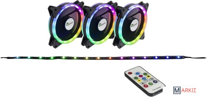 Комплект из 3-х корпусных вентиляторов 120 мм и светодиодной лентой длинной 50 см для компьютеров с адресной светодиодной подсветкой и блоком управления для выбора режима подсветки.Резиновые накладки под монтажными отверстиями, которые также обеспечивают незаметную установку винтов, надежно предотвращают передачу вибраций вентиляторами на корпус ПК и обеспечивают плавную работу.В комплект поставки входит блок управления, который поддерживает подключение до 8 вентиляторов и 2 светодиодных лент, имеет магнитное крепление.Можно использовать встроенный 5-вольтовый RGB-разъем для синхронного управления и контроля всех RGB-устройств через материнскую плату.